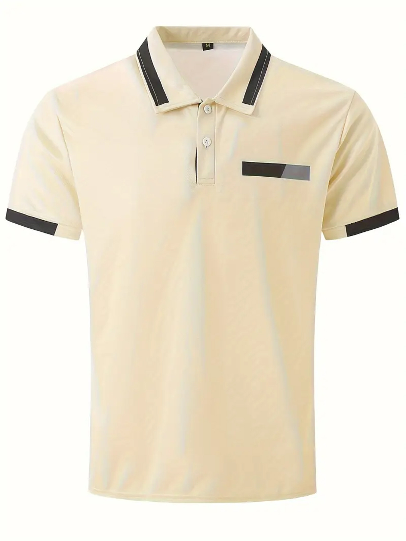 Men'S Casual Shirt - Breathable, Stretchy Polyester with Contrasting Neckline And Cuffs, Short Sleeve Golf Top for Work, Dating And Casual Wear