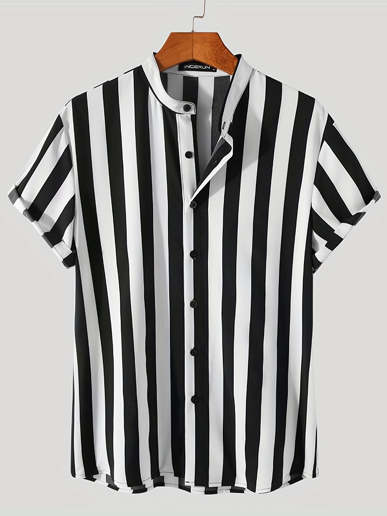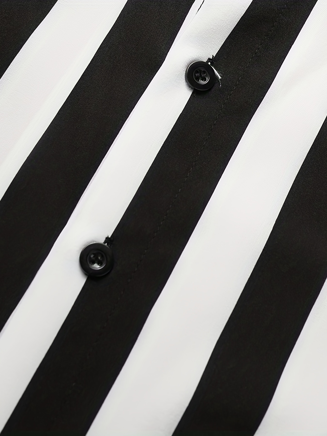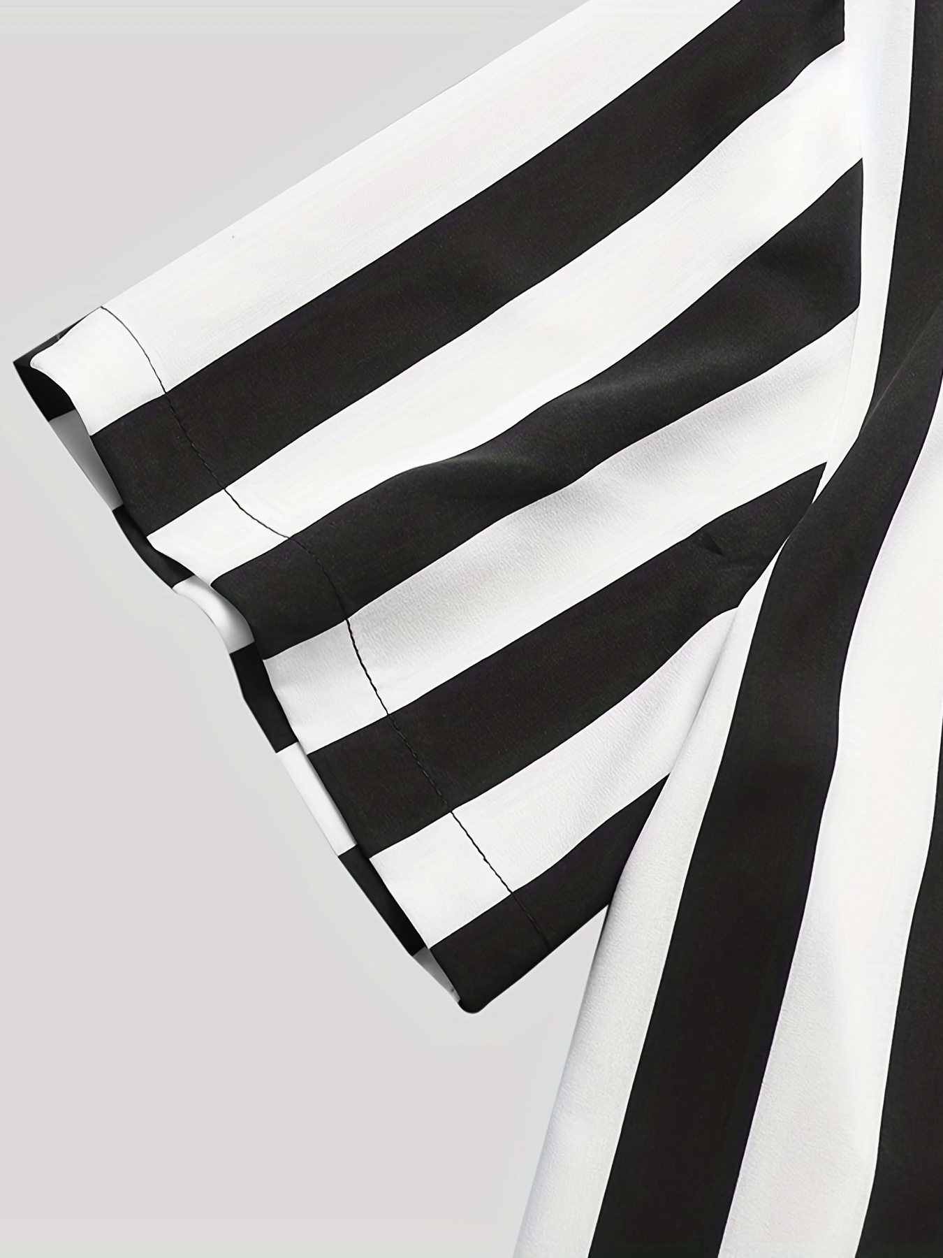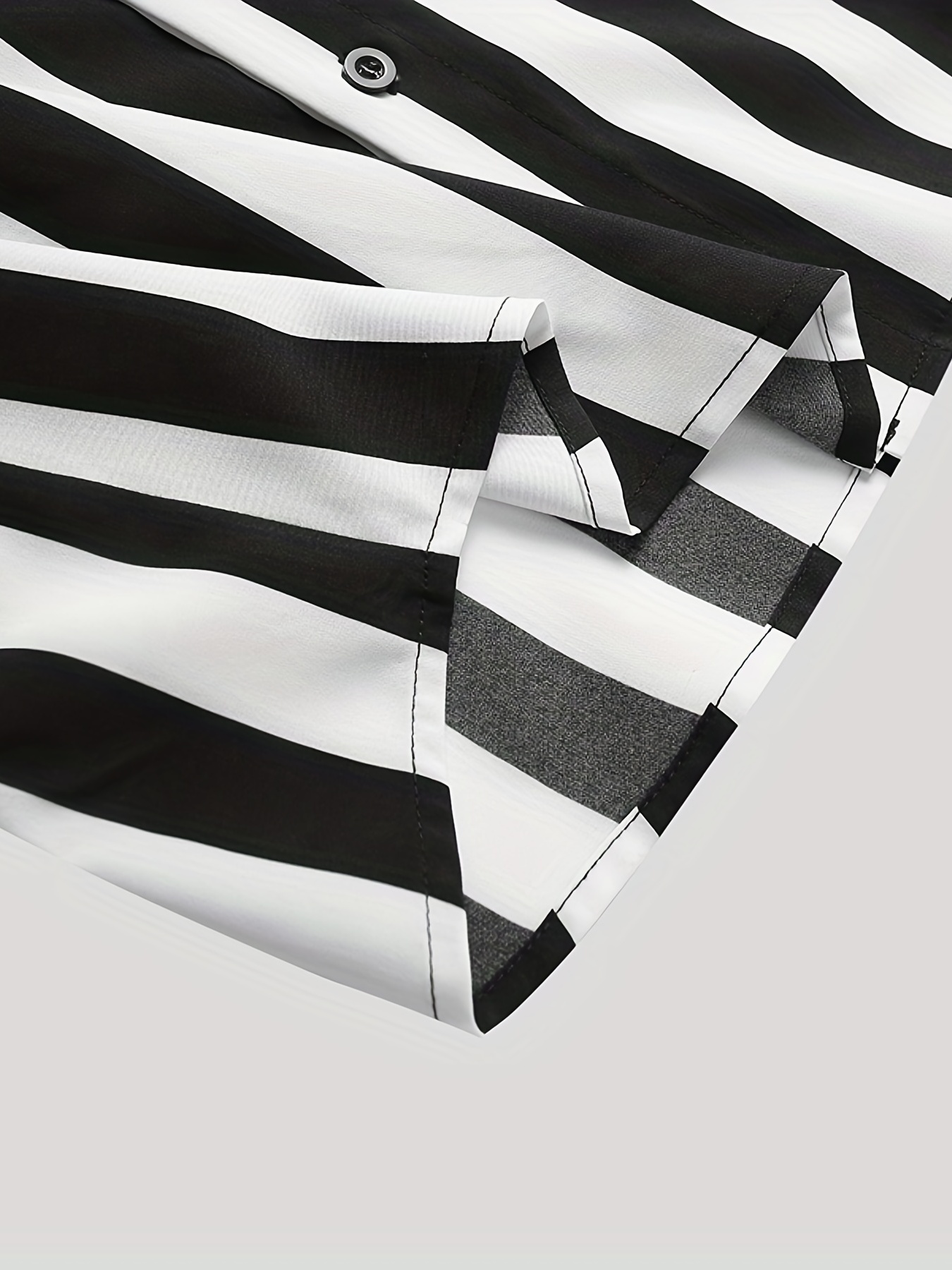 Men's Hawaiian Shirt - Black & White Striped with Orange Collar, Short Sleeve Summer Beach Shirt, Relaxed Fit Casual & Semi-Formal Outfits, Machine Washable Tropical Shirt for Men, Mismatched Pattern with Black and White Stripes, Breathable Fabric for Warm Weather, Stylish and Comfortable for Beach Outings and Casual Attire, Hawaiian Shirt Men Plus Size