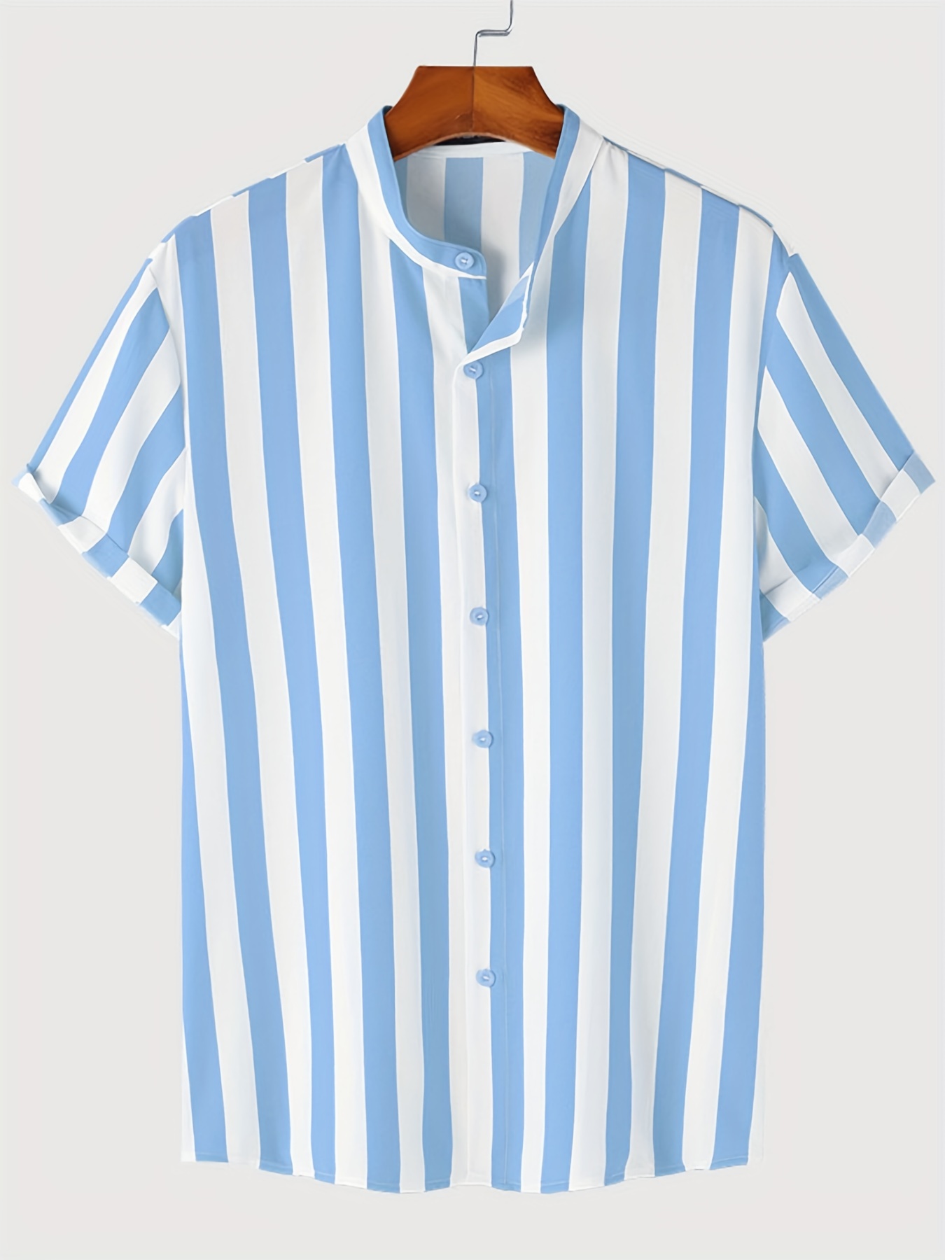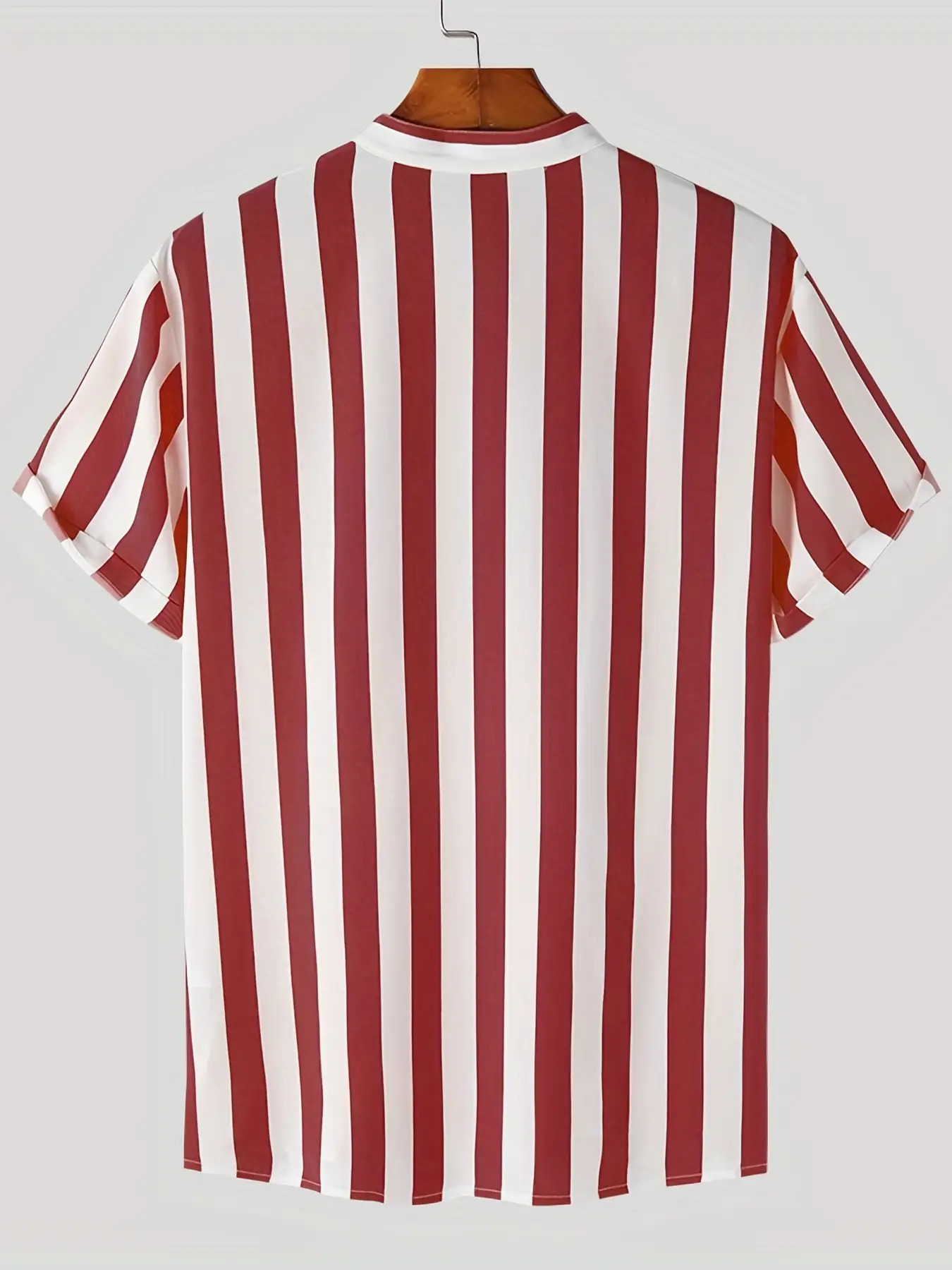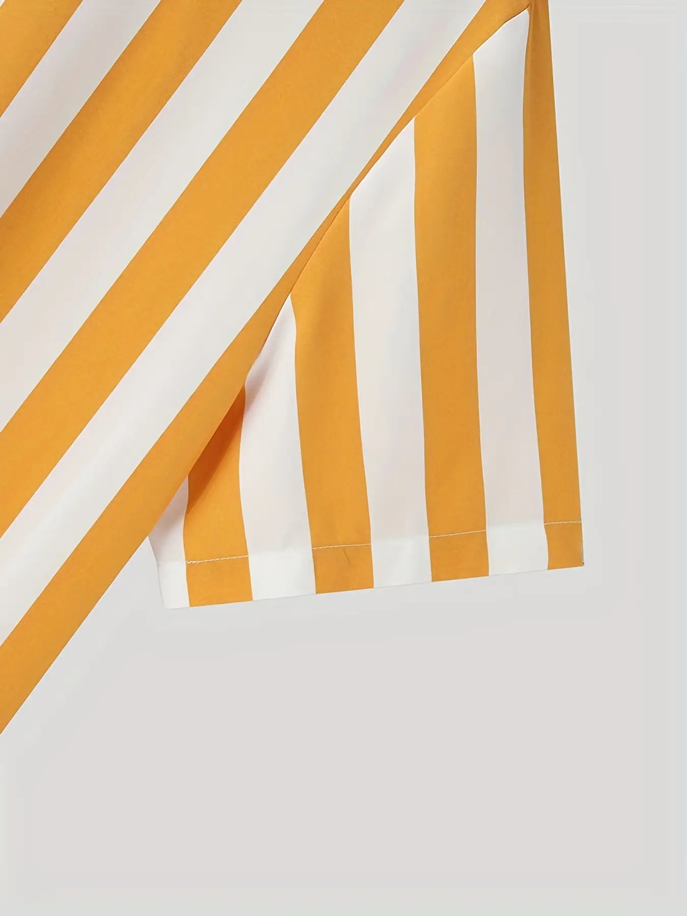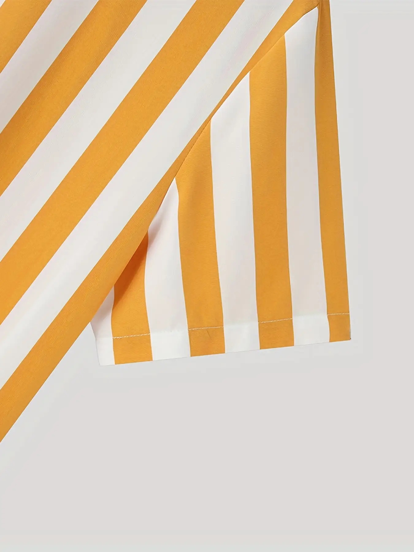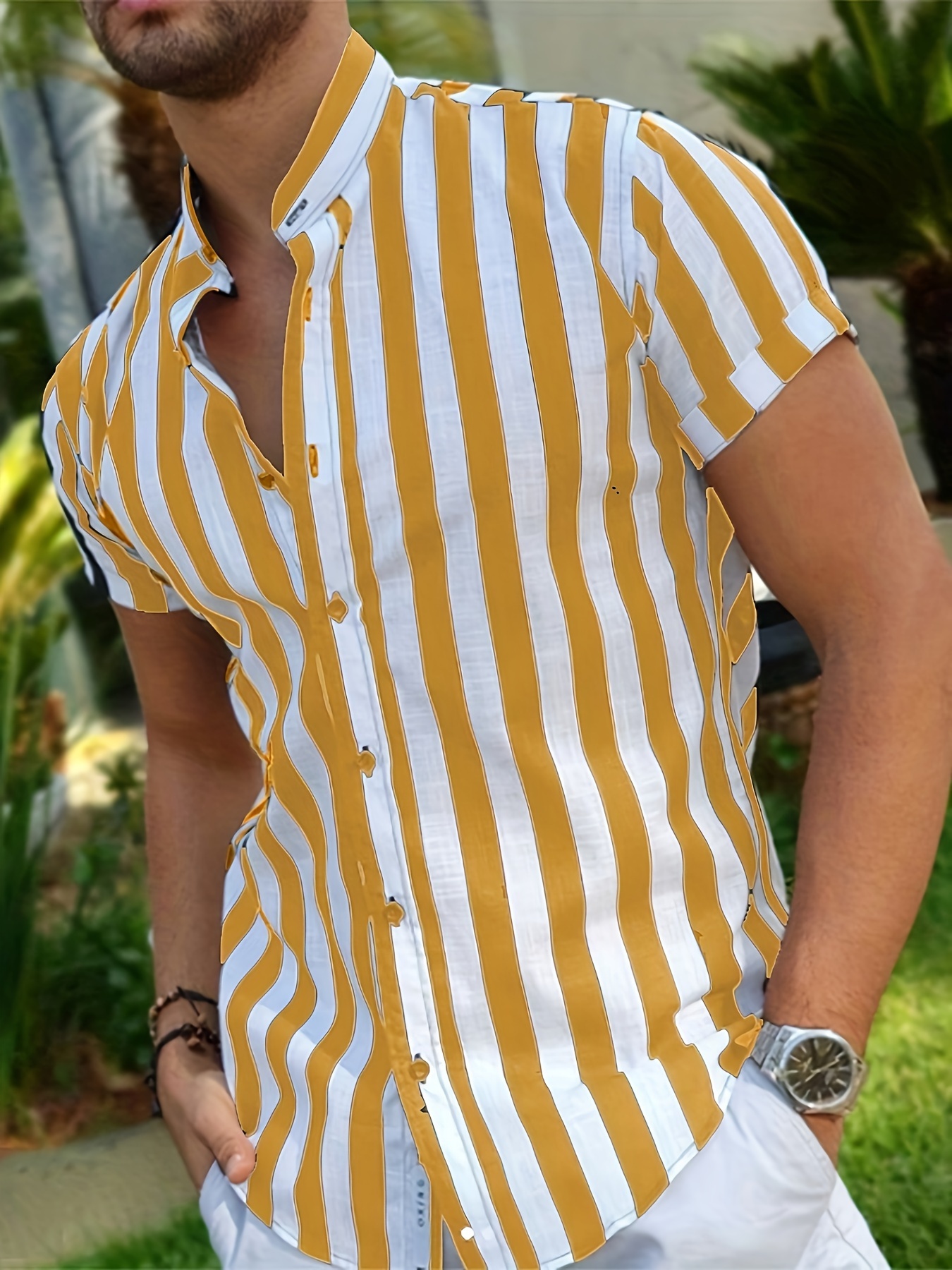 Men's Hawaiian Shirt - Black & White Striped with Orange Collar, Short Sleeve Summer Beach Shirt, Relaxed Fit Casual & Semi-Formal Outfits, Machine Washable Tropical Shirt for Men, Mismatched Pattern with Black and White Stripes, Breathable Fabric for Warm Weather, Stylish and Comfortable for Beach Outings and Casual Attire, Hawaiian Shirt Men Plus Size