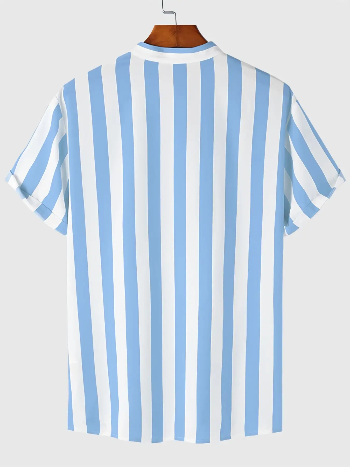 Men's Hawaiian Shirt - Black & White Striped with Orange Collar, Short Sleeve Summer Beach Shirt, Relaxed Fit Casual & Semi-Formal Outfits, Machine Washable Tropical Shirt for Men, Mismatched Pattern with Black and White Stripes, Breathable Fabric for Warm Weather, Stylish and Comfortable for Beach Outings and Casual Attire, Hawaiian Shirt Men Plus Size