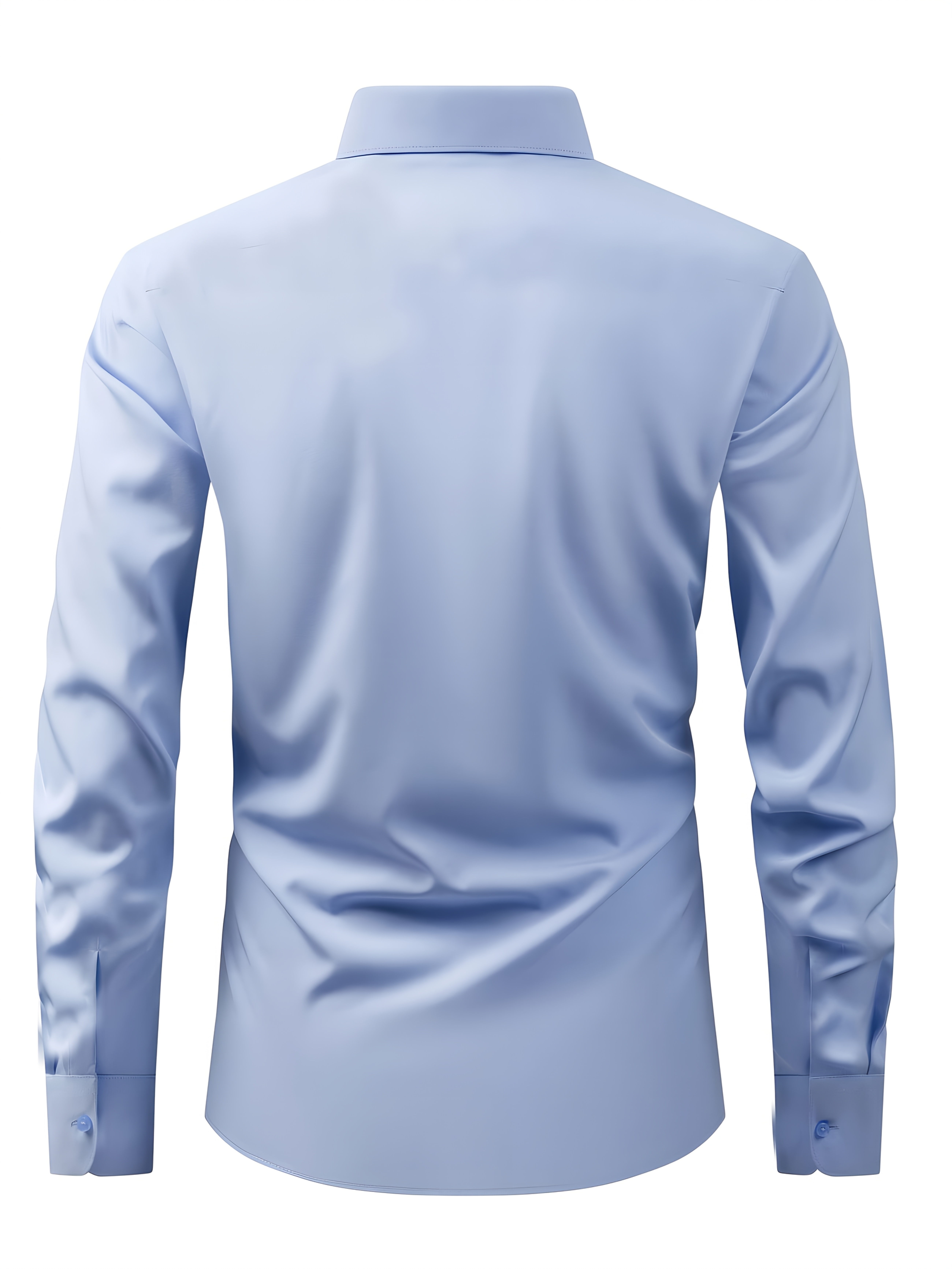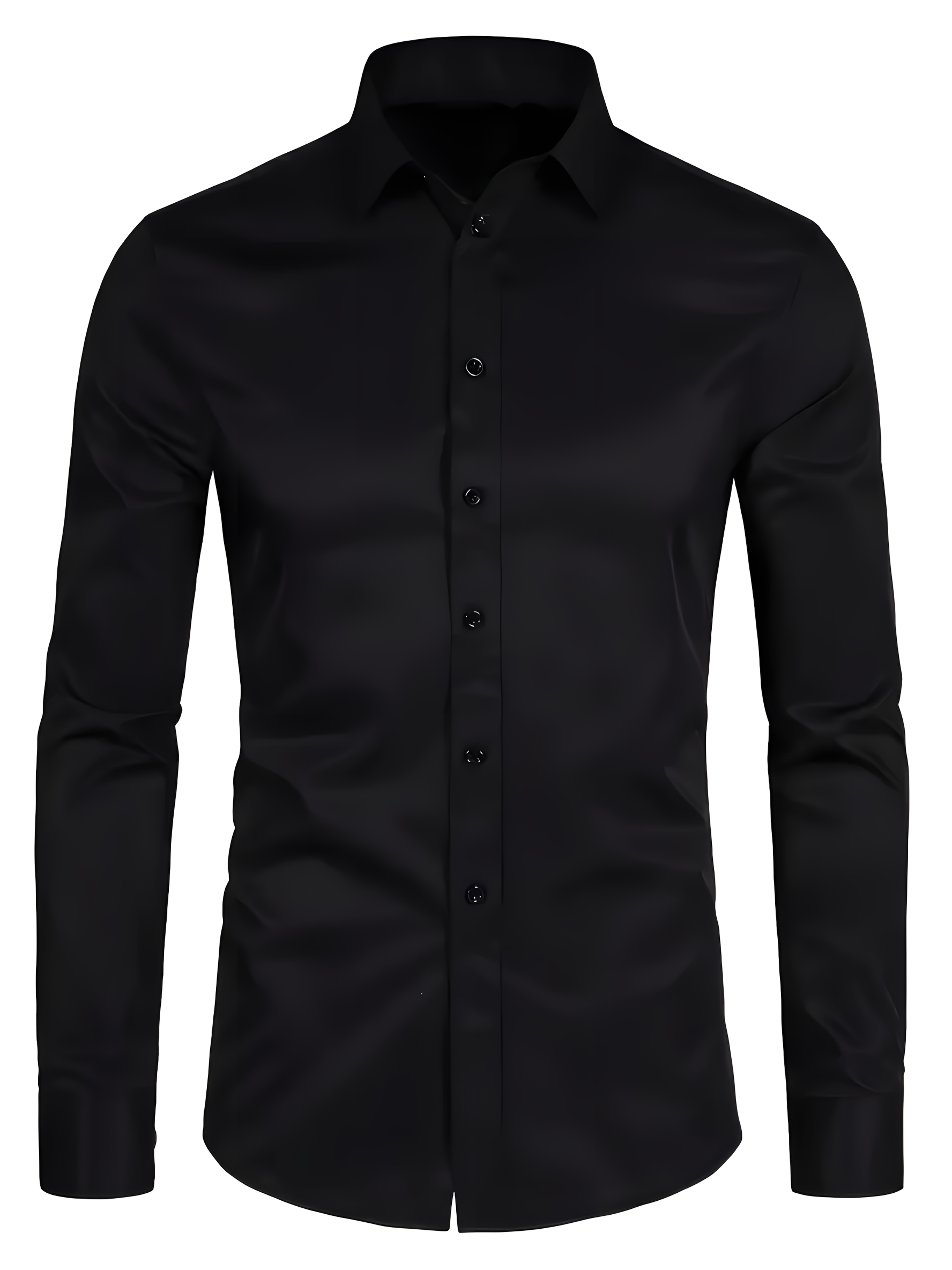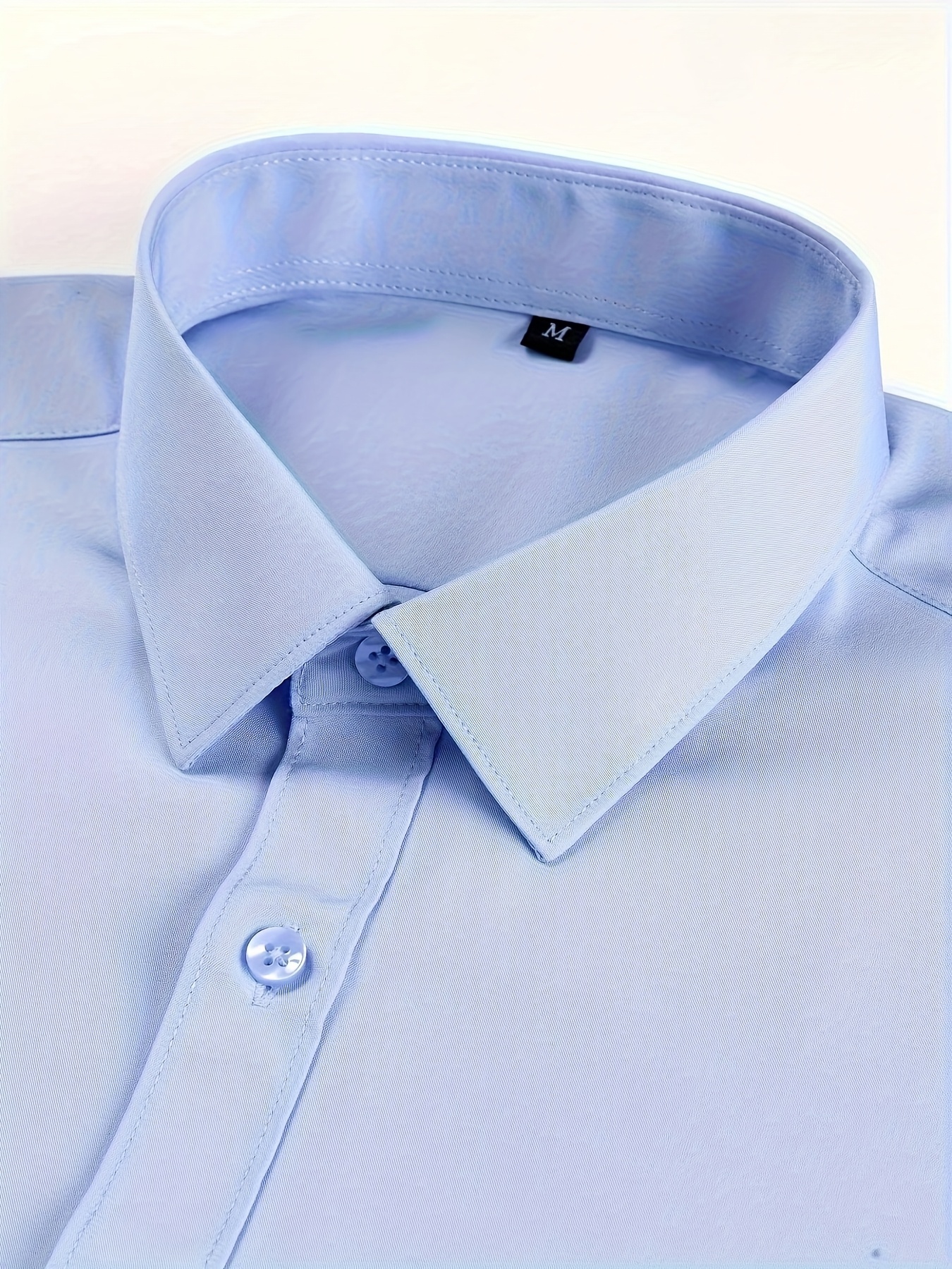 Men'S Polyester Casual Dress Shirt - Solid Color, Button-Up, Lapel Collar, Moderate Stretch, Comfortable Design for All Seasons, 120g/㎡, Casual Wear|Modern Casual Shirt|Sleek Appearance