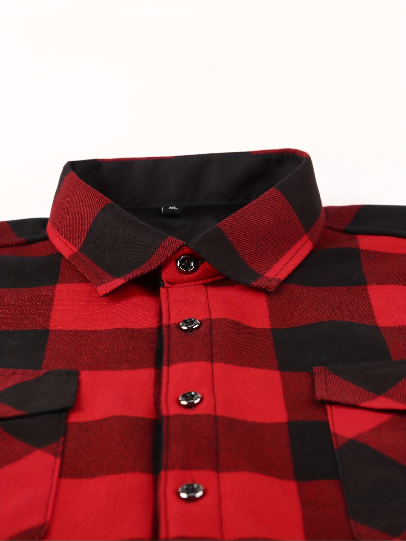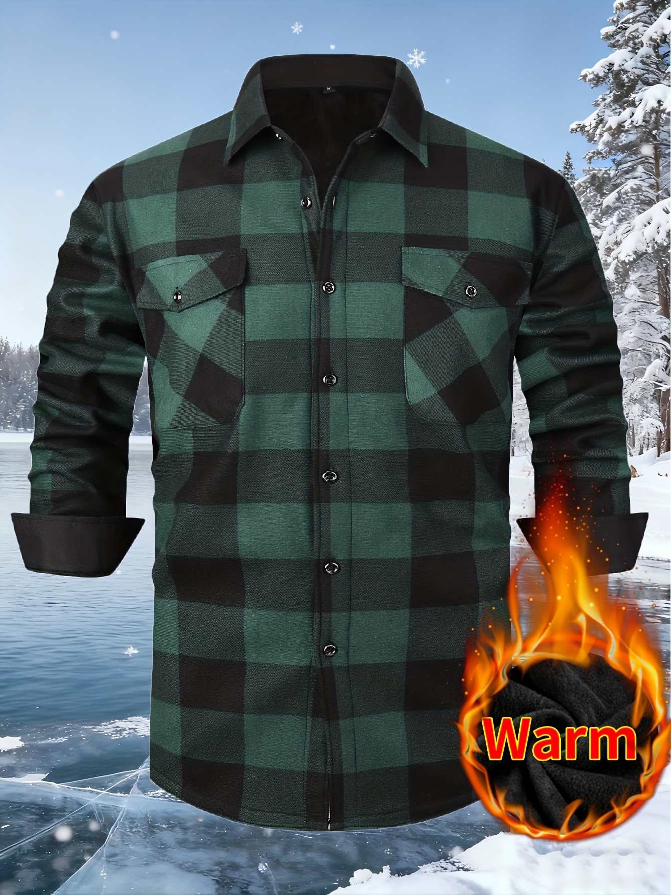 Men's Winter Warm Fleece-Lined Flannel Shirt - Thick Multi-Pocket Plaid Button- Collar Shirt, Wrinkle-Resistant Casual Office & Outdoor Wear, Cozy Long Sleeve for home (Hand Washable) - Regular Fit Fall/ Winter Clothing