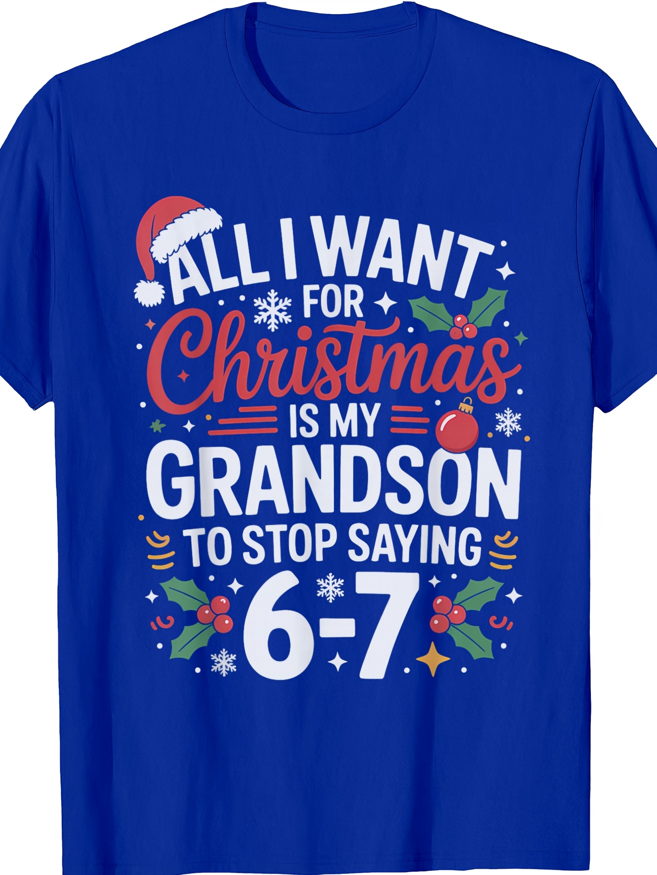 67 Meme Six Seven All I Want For Christmas Designs Grandson Saying 6 7 67 Six Seven Grandparents Christmas T Shirt | Crew Neck, Medium Stretch Fabric, Suitable for All Seasons