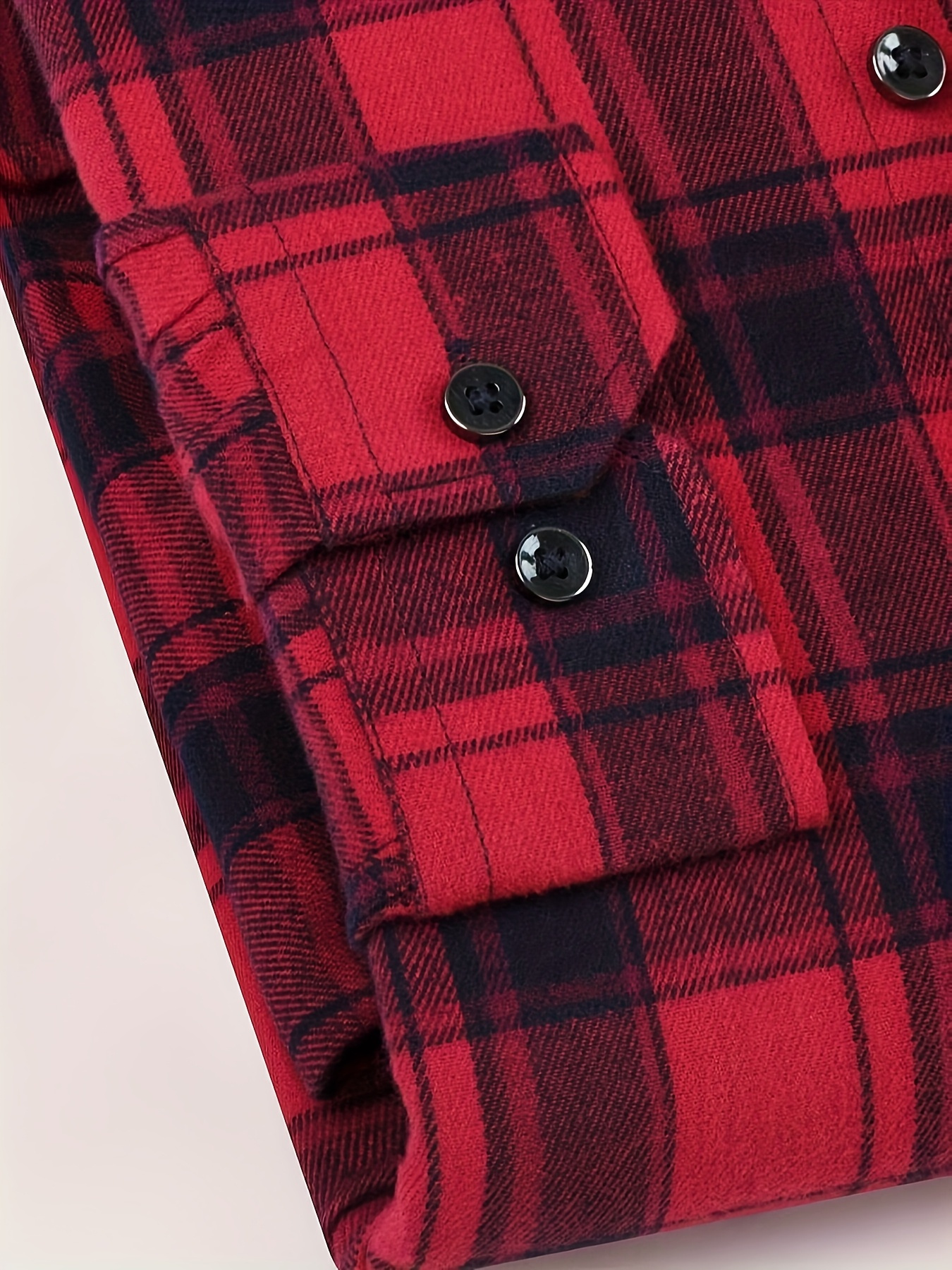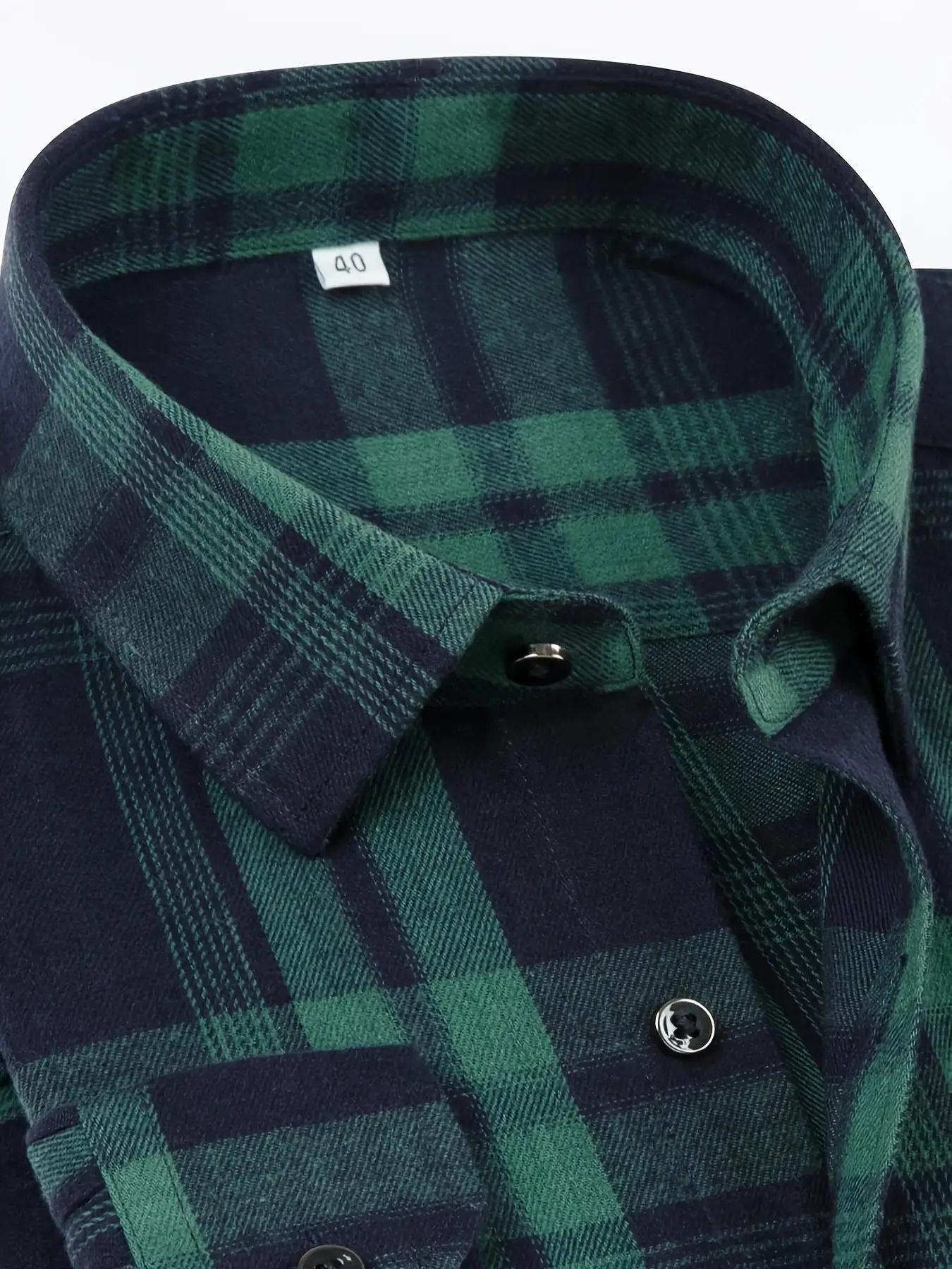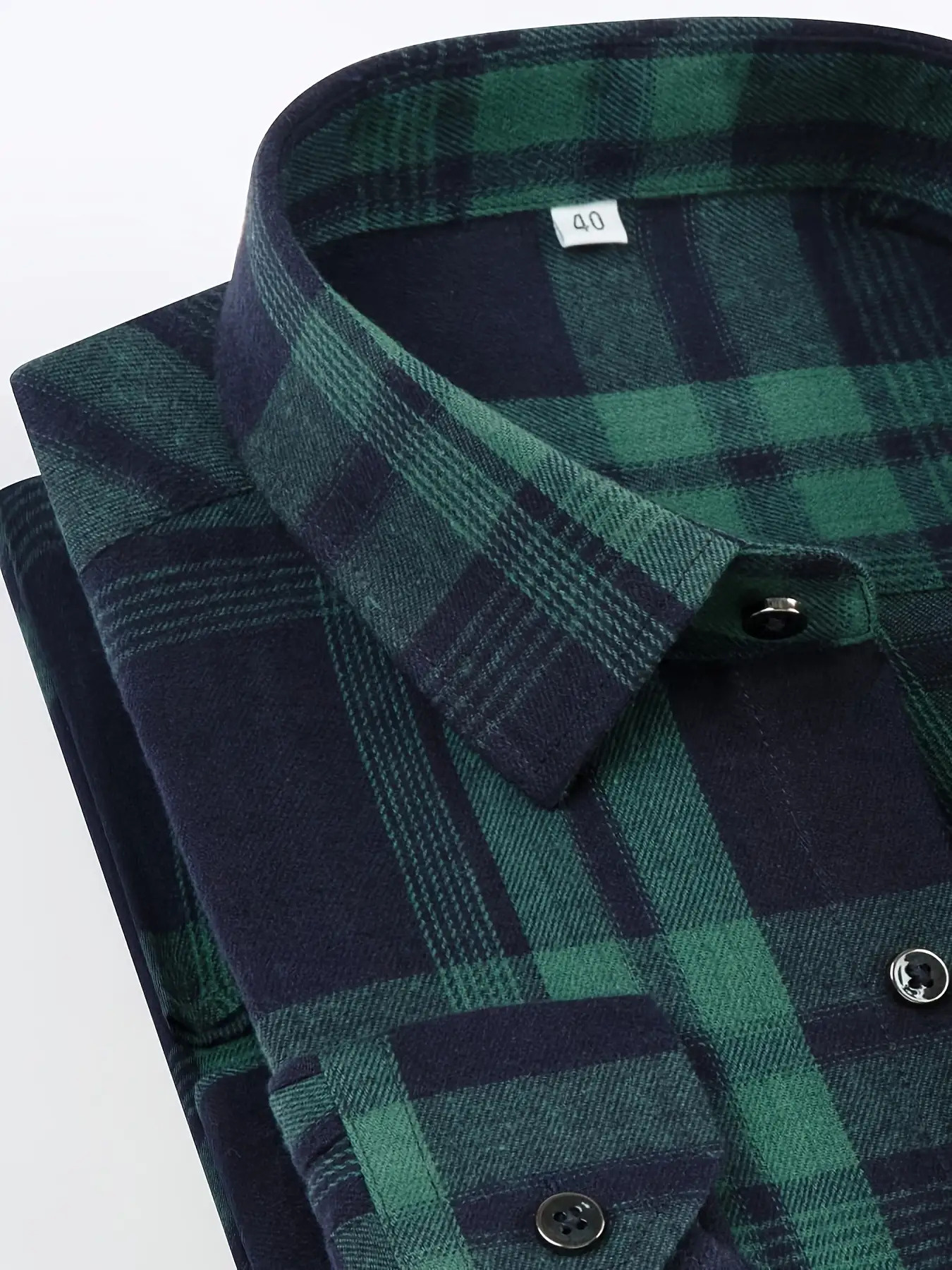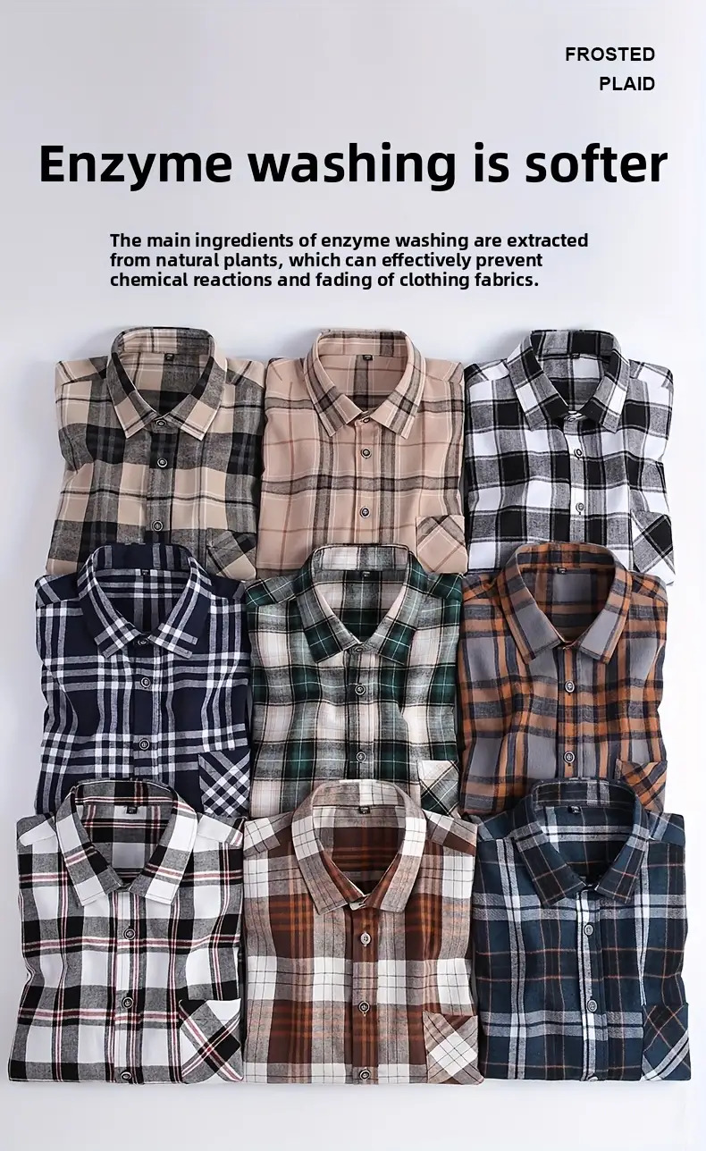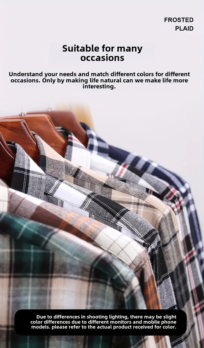 Men'S Wrinkle-Resistant Stretch Long Sleeve Dress Shirt - Business Casual & Formal Button-Up with Chest Pocket, Brown/White Checkered Pattern, Square Collar, Wrinkle-Free Easy Care Fabric for Office, Semi-Formal Events - Spring/Fall Season Shirt for