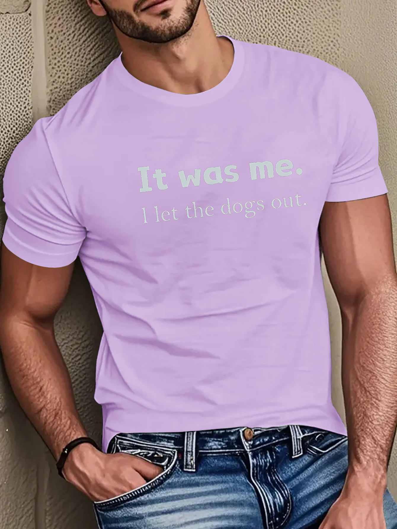 Men's Funny "It Was Me. I Let The Dogs Out" Graphic T-Shirt - Green with White Text - Soft Breathable Regular Fit Tee for Everyday Summer Wear - Casual Outfits & Themed Events, Humorous Apparel, Relaxed Style, Ribbed Neckline, Playful Design, Comfortable Material, Print Shirt, Adult Men