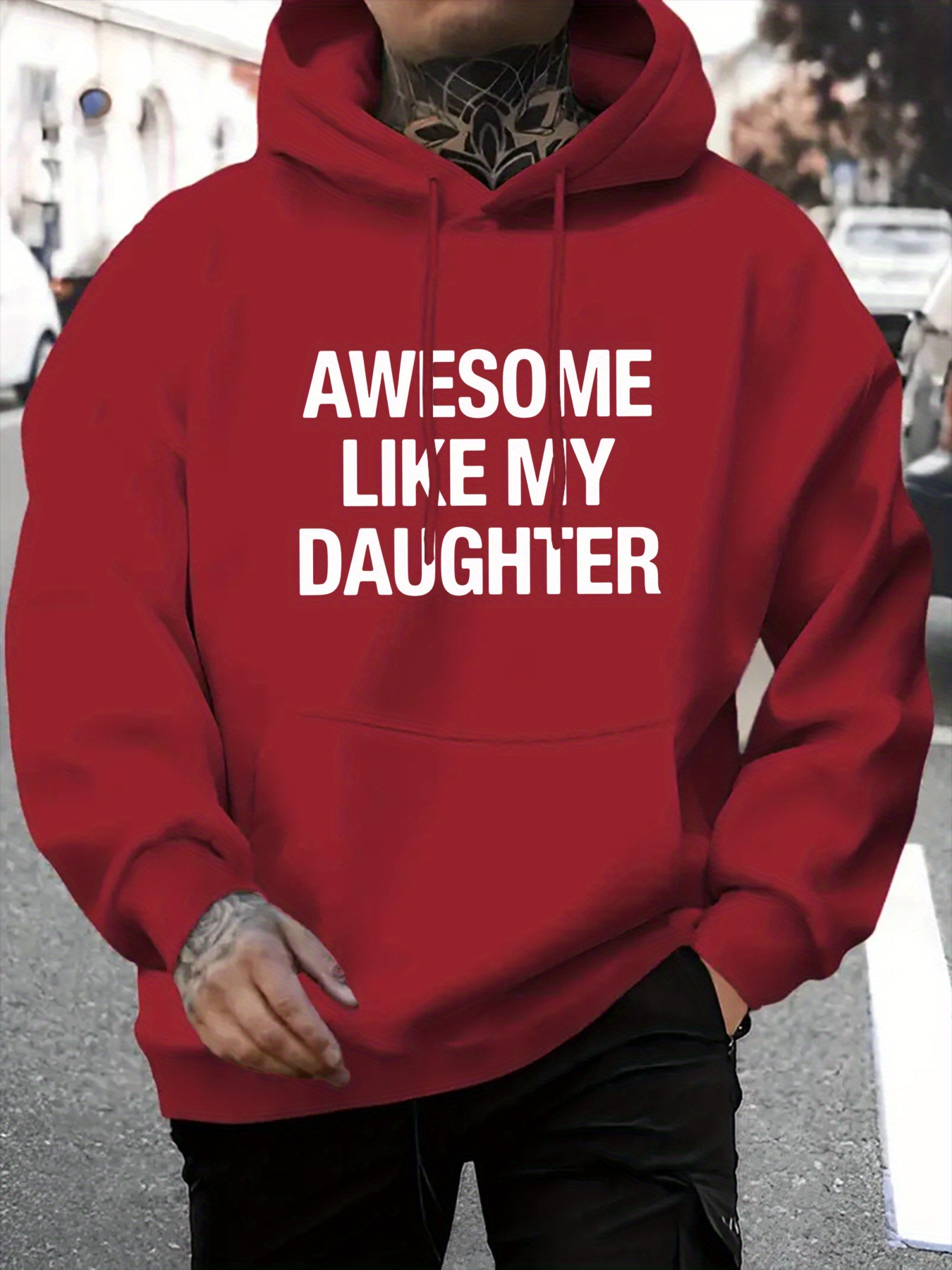 Men's & Women's Awesome Like My Daughter Print Hooded Sweatshirt - Cozy Fall/Winter Casual Streetwear Hoodie with Pockets, Machine Washable Pullover Sweater for Fathers & Matching Outfits (Regular Fit)