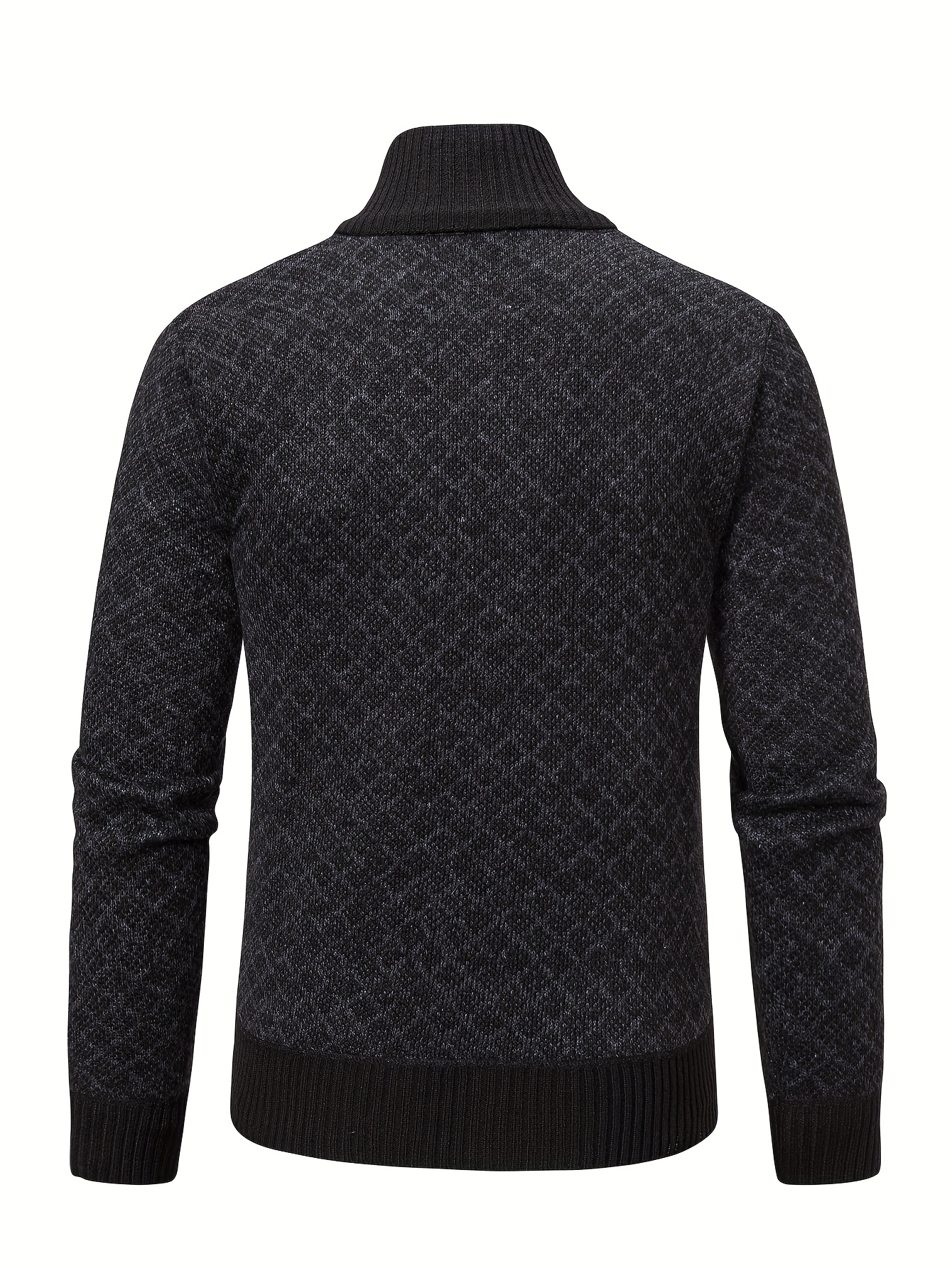 Men's Slim-Fit Thick Winter Knit Jacket with Stand Collar & Plaid Pattern - Warm Coat for Cold Weather, Casual Outerwear for Office or Everyday Use, Layering Piece under Suit Coats (Novelty Category)