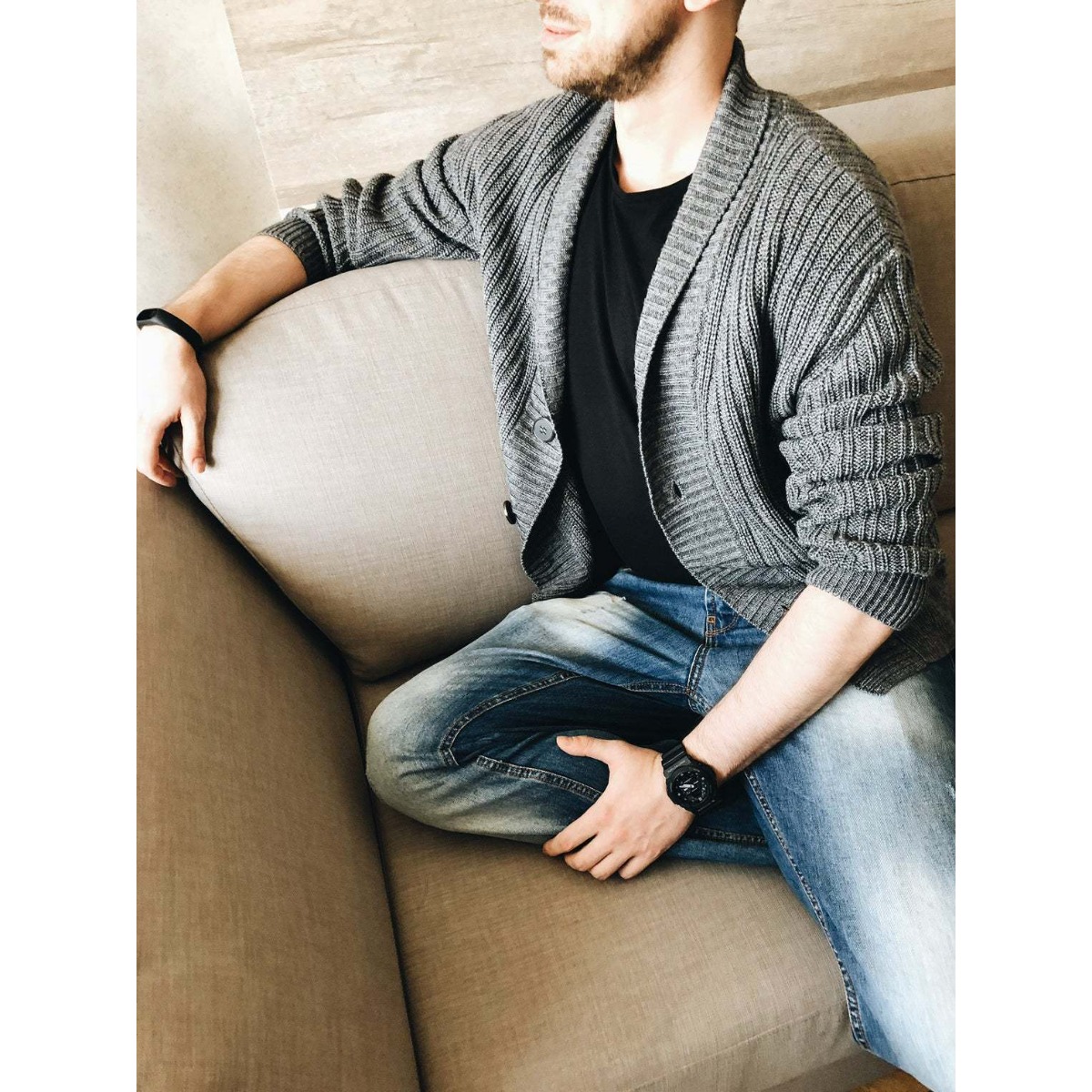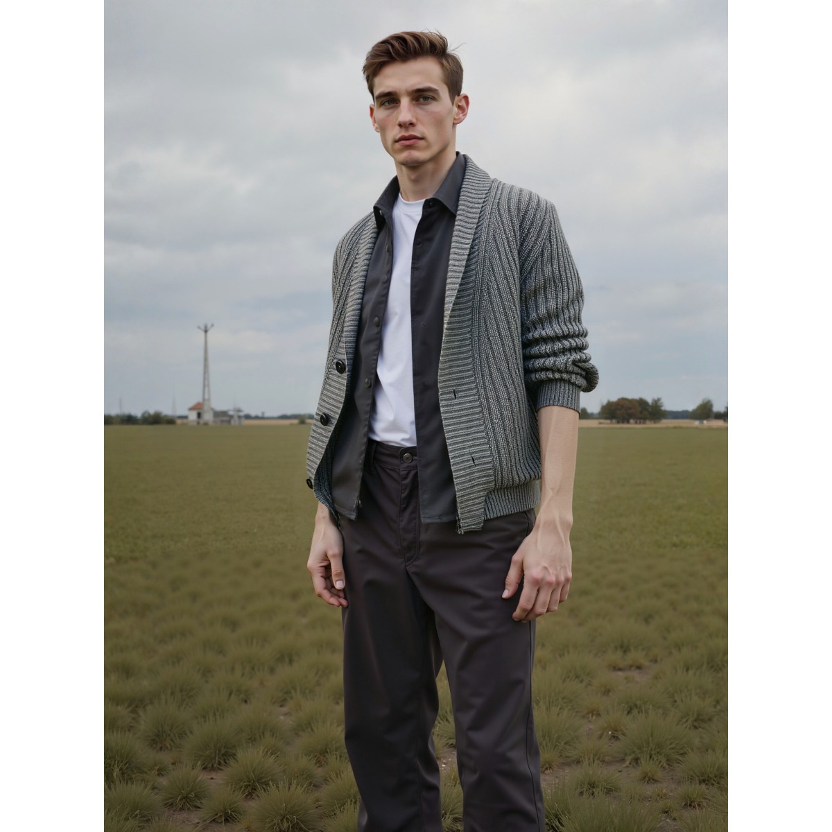 Men'S Oversized Two-Tone Knit Cardigan Sweater - V-Neck Button-Front Closure, Cozy Winter Pullover with Chest Pocket, Slim-Fit Casual Sweater for Coffee Dates & Weekend Outings, Y2K Retro Layered Outfits (Autumn/Winter) - Solid Color Block Design