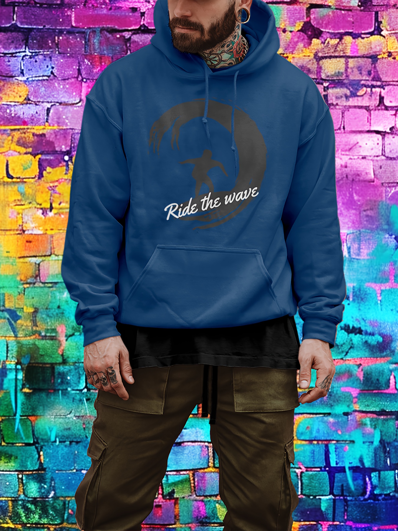 Men's Warm Winter Hooded Sweatshirt with Hot Transfer Geometric Print - Casual Streetwear Pullover Hoodie, Pockets & Machine Washable, Cozy Fall & Winter Sweater for Outdoor Daily Wear