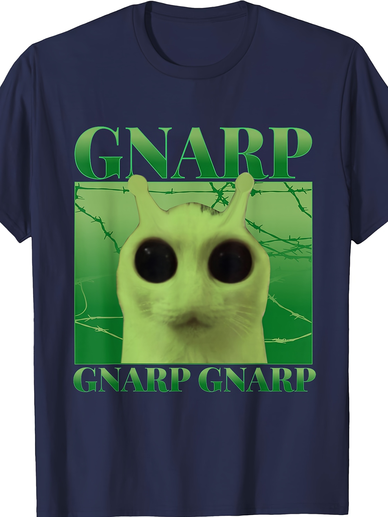 Funny Alien Cat Meme Silly Cats gnarp cat Meme | Brainrot gnarp cat Meme T Shirt, Crew Neck, Medium Stretch Fabric, Suitable for All Seasons and Various Occasions
