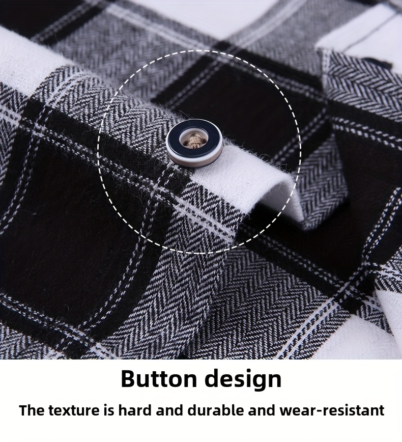 Men'S Wrinkle-Resistant Stretch Long Sleeve Dress Shirt - Business Casual & Formal Button-Up with Chest Pocket, Brown/White Checkered Pattern, Square Collar, Wrinkle-Free Easy Care Fabric for Office, Semi-Formal Events - Spring/Fall Season Shirt for