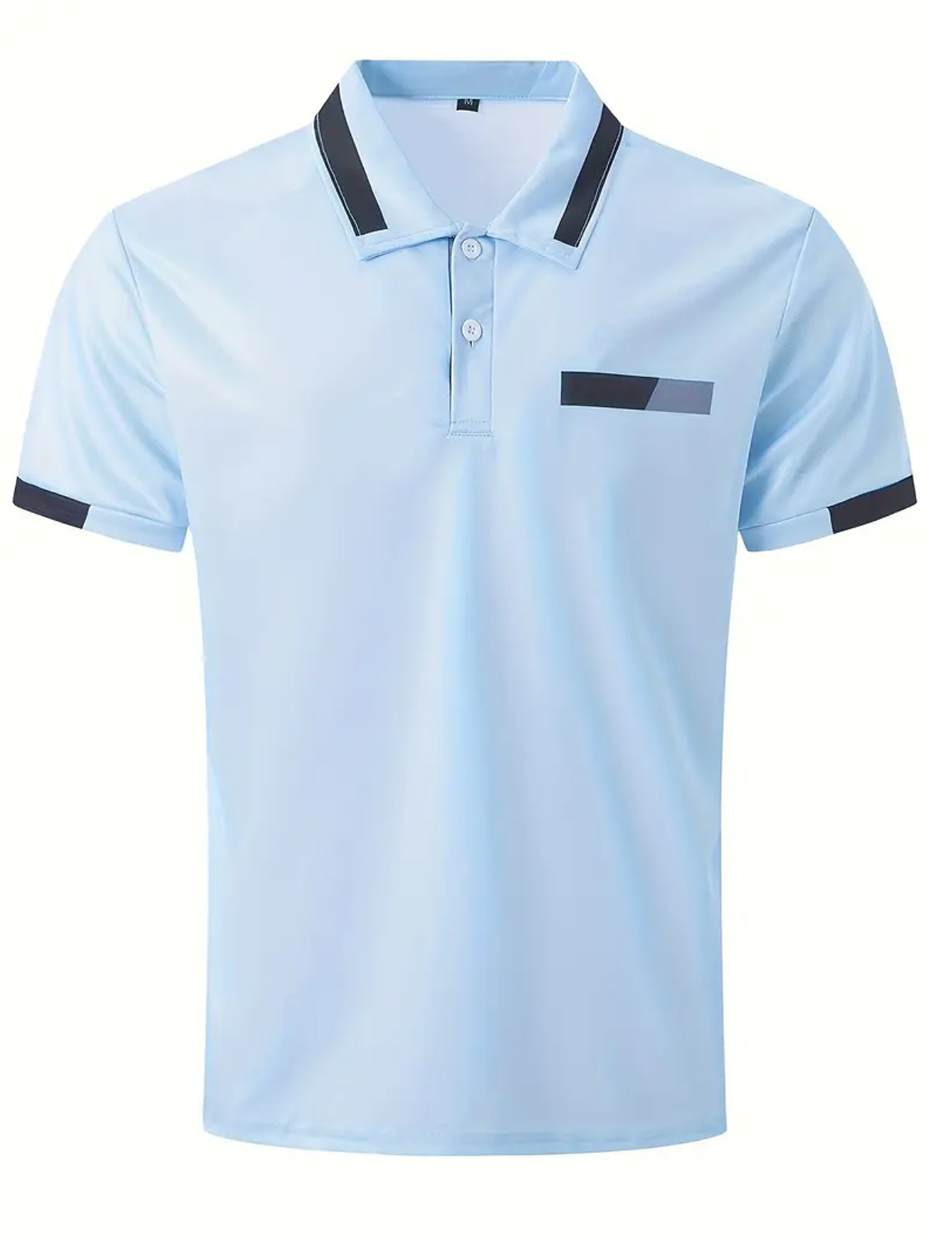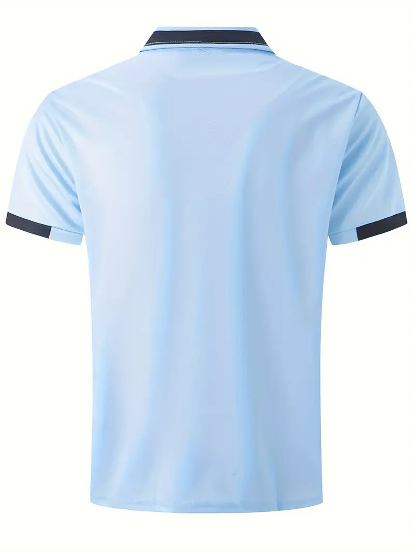 Men'S Casual Shirt - Breathable, Stretchy Polyester with Contrasting Neckline And Cuffs, Short Sleeve Golf Top for Work, Dating And Casual Wear