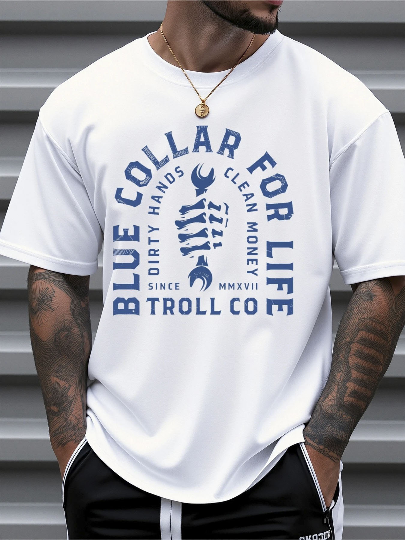 Men's Heavyweight 100% Cotton T-Shirt - Loose Fit Crewneck Tee with Blue Collar Lifestyle Graphic (Hands for Dirty Work, Money Since '97) - Breathable Everyday & Outdoor Shirt for Construction, Gym, Casual Streetwear - Machine Washable All-Season Apparel, Gym Attire, Trendy Graphic Tee, Knit Weave Fabric