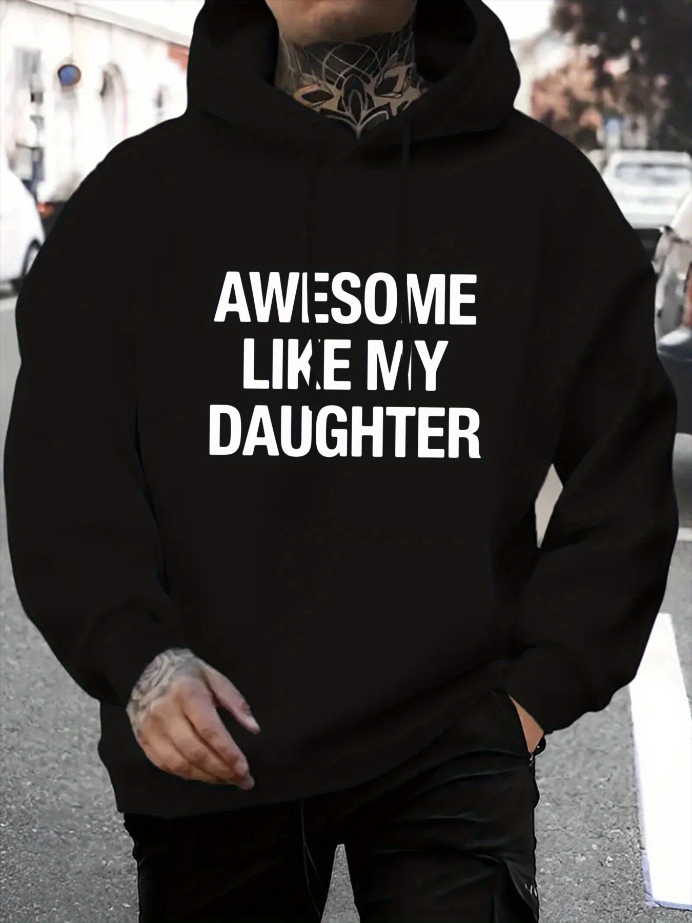 Men's & Women's Awesome Like My Daughter Print Hooded Sweatshirt - Cozy Fall/Winter Casual Streetwear Hoodie with Pockets, Machine Washable Pullover Sweater for Fathers & Matching Outfits (Regular Fit)