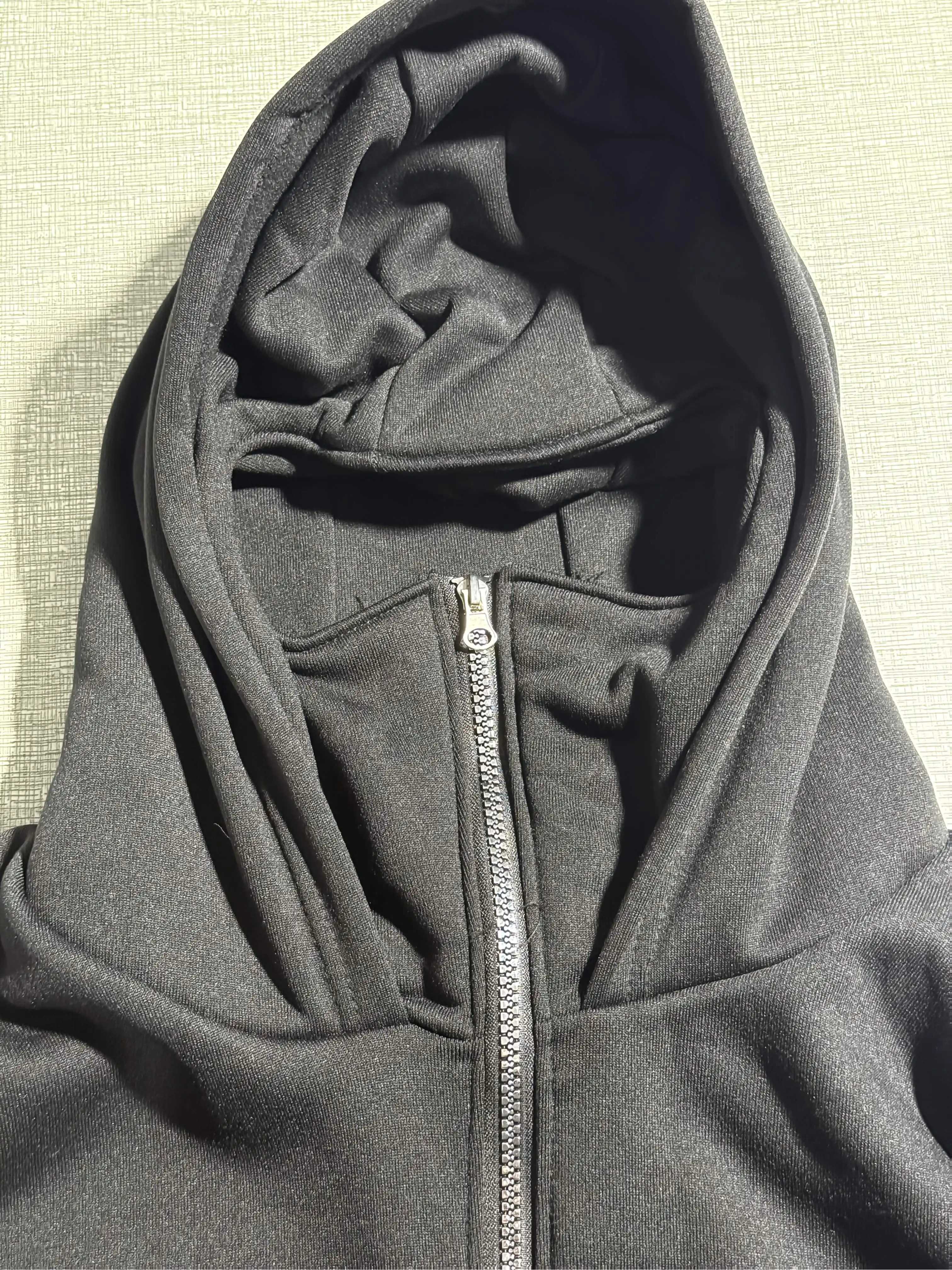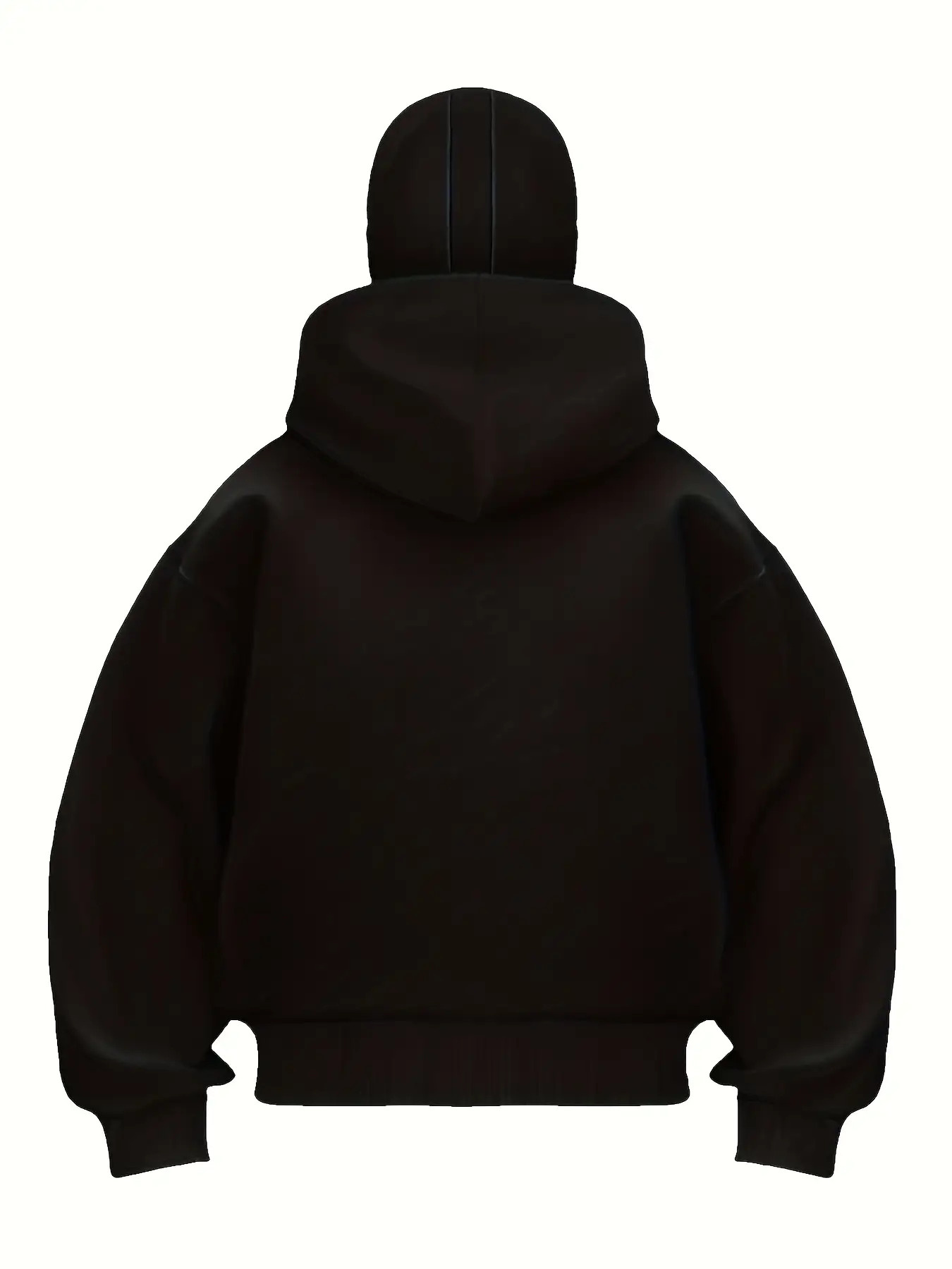 Men'S Windproof Full-Zip Hooded Jacket with Detachable Balaclava - Heavy-Duty Full-Zip Front, Loose Fit Casual Winter Coat, Geometric Pattern Hoodie for Outdoor Activities & Casual Attire, Windproof & High Quality Design, Full-Zip Hooded Sweatshirt