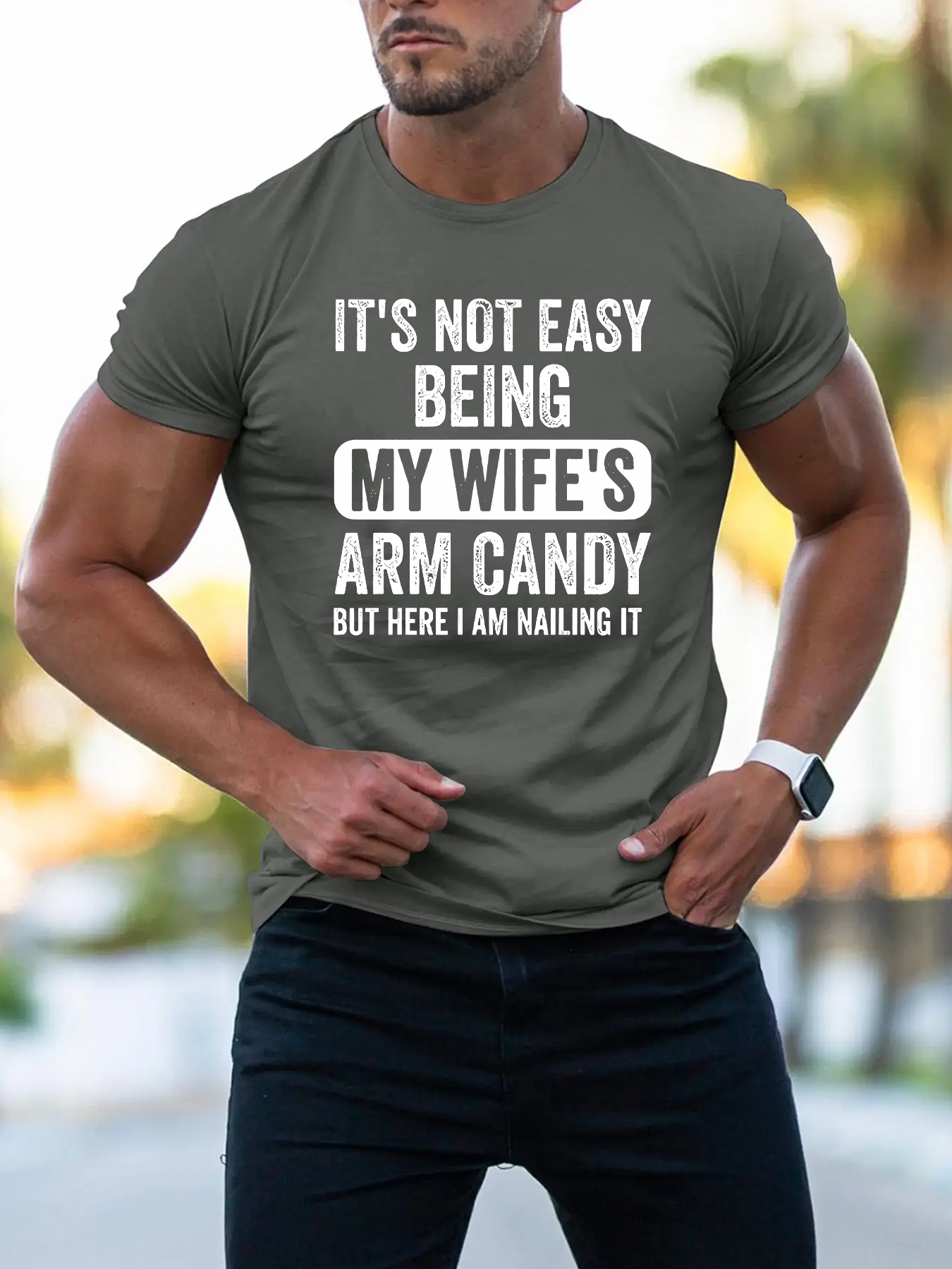[Summer Casual Attire] Men's Humorous "Arm Candy" T-Shirt - Turquoise Casual Short Sleeve Bold Print Tee, Round Neck, Machine Washable, Playful Design, Regular Fit